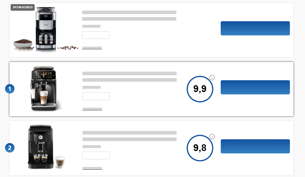 In dergelijke gevallen wordt dit duidelijk aangegeven buiten de reguliere ranglijst. Deze advertentieplaatsingen hebben geen invloed op de algoritmisch berekende vergelijkingslijst.